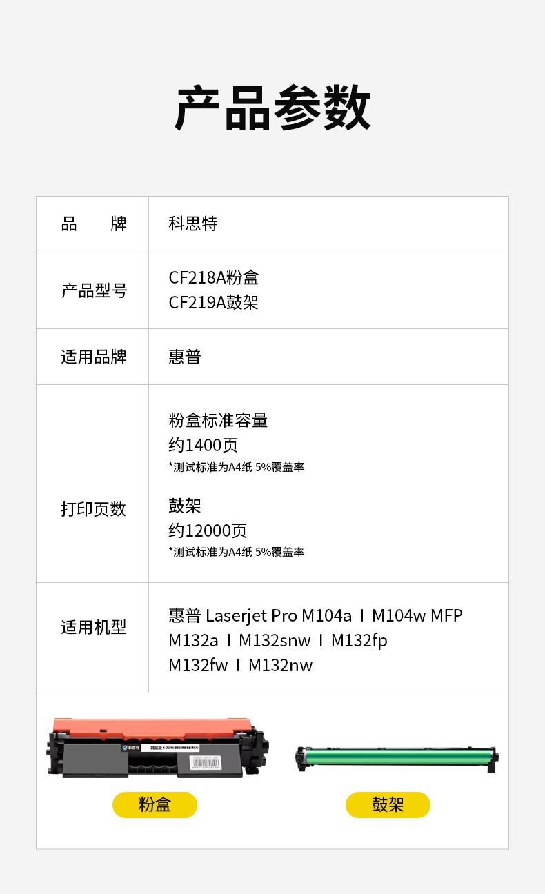 科思特/KST CF218A 粉盒适用HP Laserjet Pro /M104a/M104W MFP/M132a/M132snw/M132fp)1400页 专业版