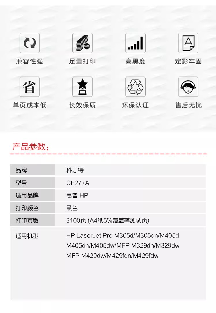 科思特/KST CF277A 硒鼓适用HP LaserJet Pro M305/M405/MFP M429/MFP M329)打印3100页 专业版