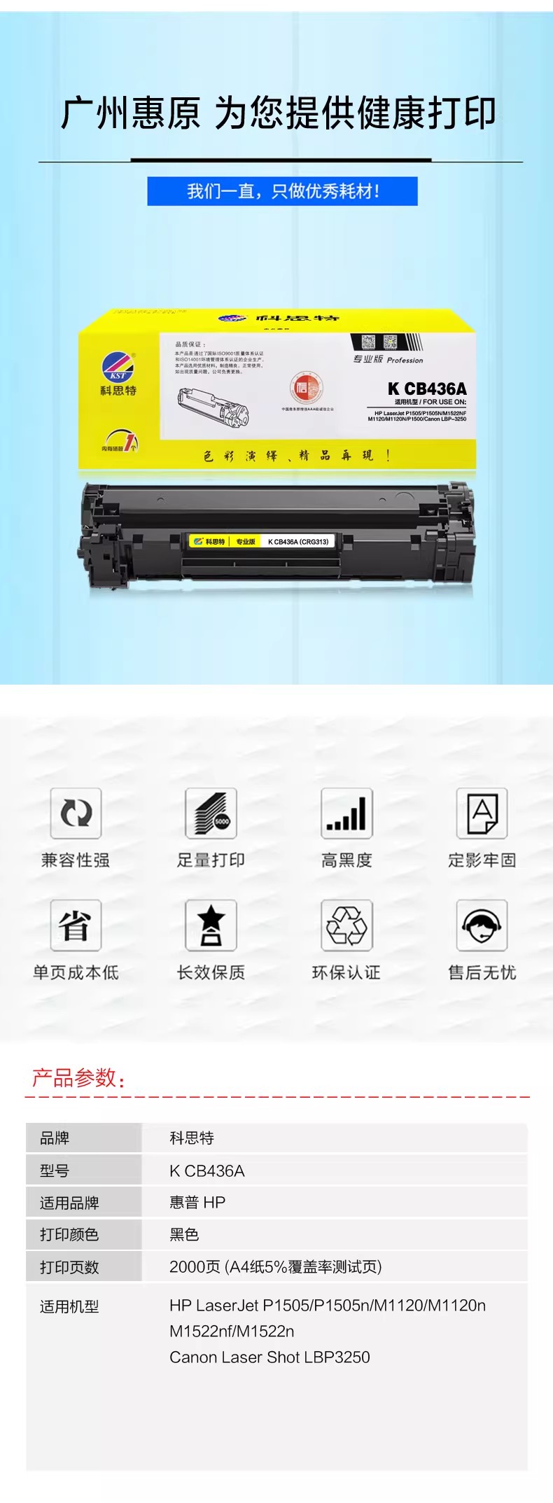 科思特/KST CB436A 硒鼓 适用惠普 P1505 P1500 M1522NF M1120 佳能3250 专业版