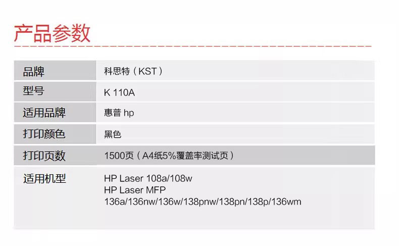 科思特/KST K 110A(W1110A) 硒鼓(适用HP Laser 108a/108W/MFP136a/MFP136w/MF138p)打印量1500页 专业版