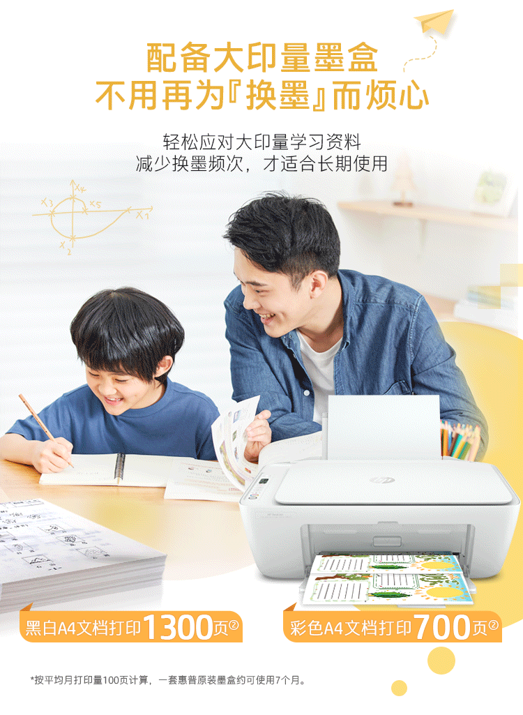 惠普(HP)DJ 4825彩色无线喷墨一体机 大印量低成本学生打印微信打印(打印 复印 扫描)2720/2775升级款