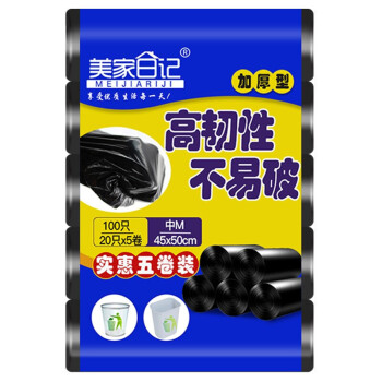 美家日记 家用平口垃圾袋 加厚连卷垃圾袋 断点式收纳袋 清洁袋45*50cm/100只装