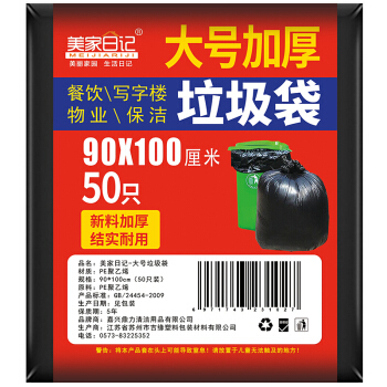 美家日记 大号垃圾袋 加厚黑色垃圾袋 商用物业平口收纳袋 分类垃圾袋 100*120CM/50只装