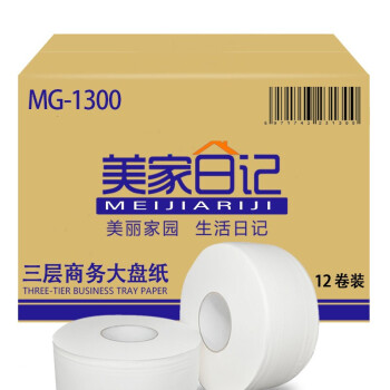 美家日记 卷纸 商用大盘纸 卫生纸厕纸 3层600克/12卷 木浆酒店卫生间商用卷筒纸 MG-1300